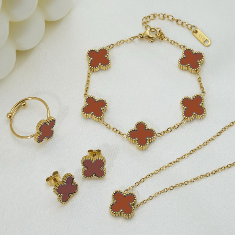 Complete Red Set Clover (Chain Bracelet + Necklace + Ring + Tops)